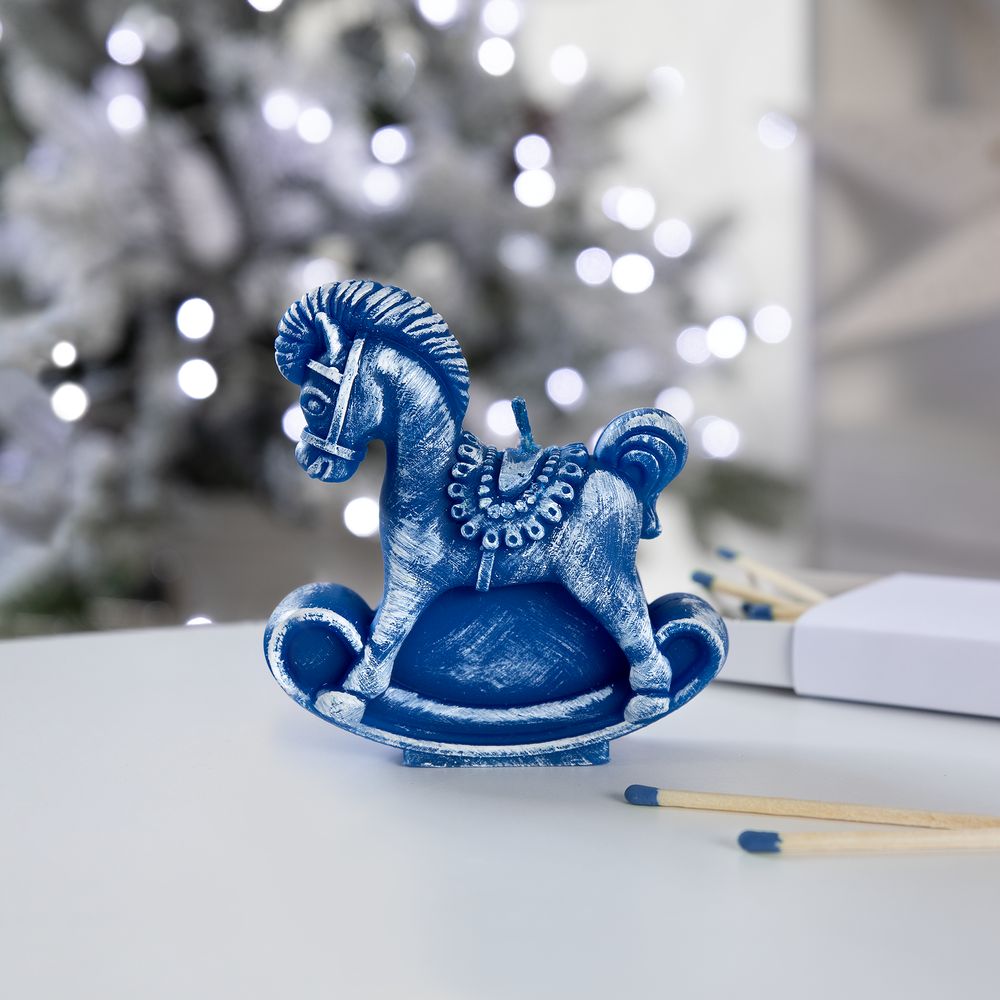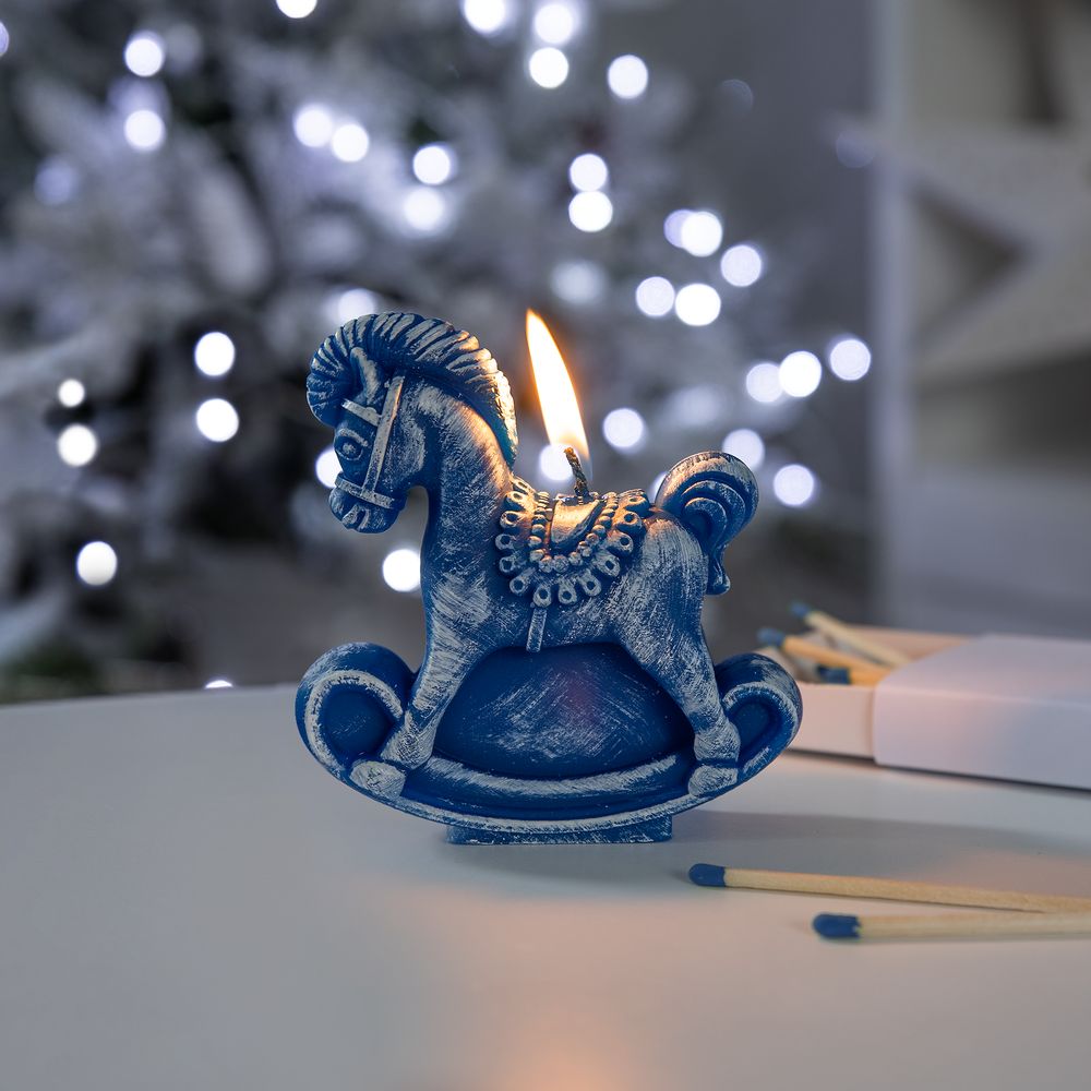Свеча фигурная «Лошадка-качалка», синяя