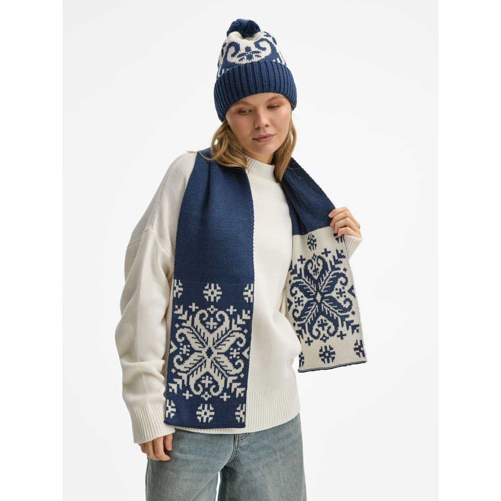 Двухслойная шапка Wintertude выполнена из мягкой полушерстяной пряжи в двух гармоничных цветах. Нерегулируемый отворот на резинке обеспечивает комфортную посадку и надежную защиту от ветра. Объемный помпон и оригинальный рисунок добавляют образу игривости, сохраняя при этом лаконичность силуэта.
