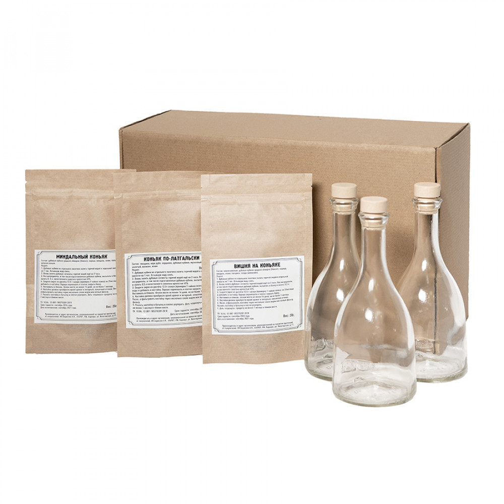 Параметры: Набор для приготовления "Коньяка по-латгальски", "Миндального коньяка", "Вишни на коньяке"