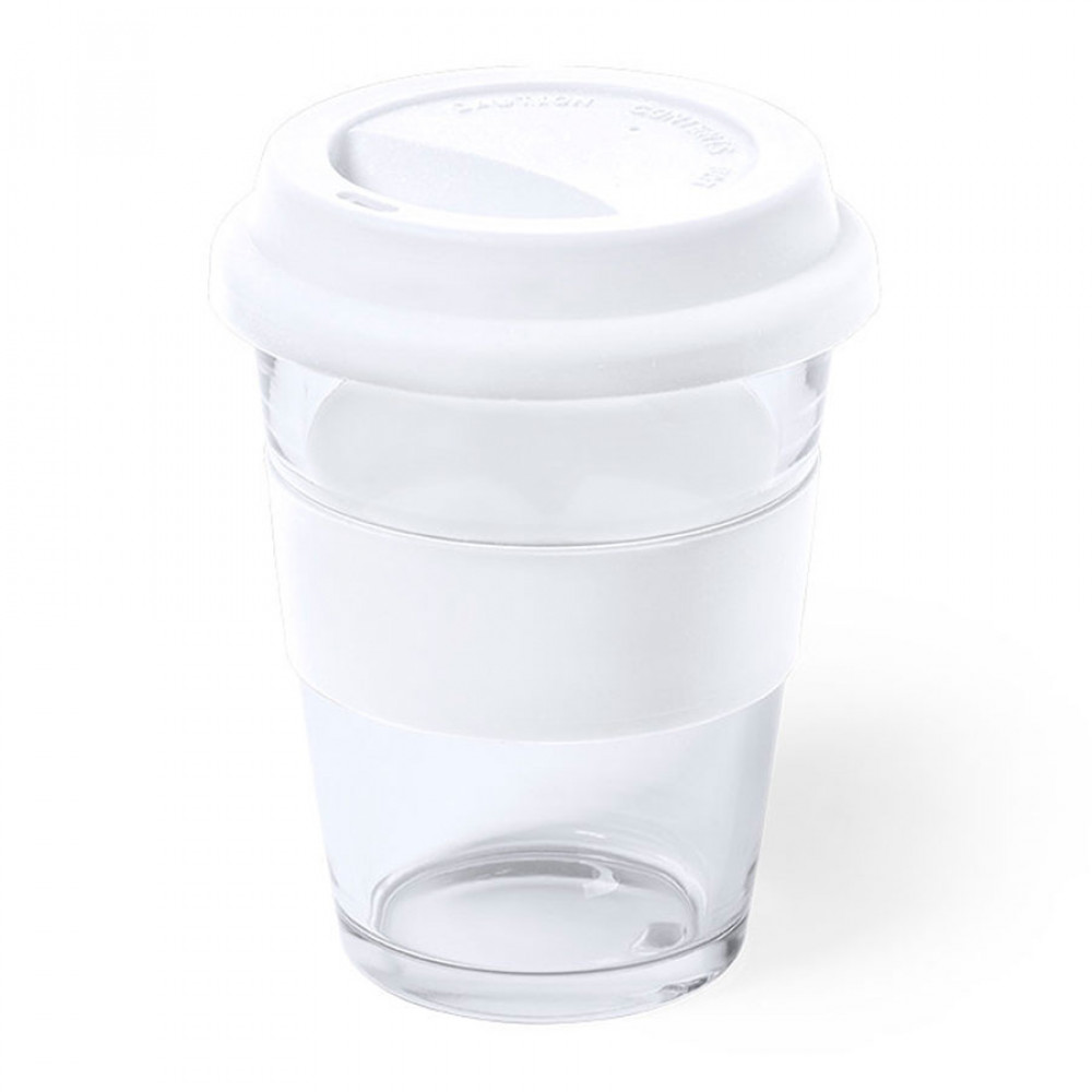 Стакан DURNOX с силиконовой крышкой, прозрачный с белым, 350мл, 12,4х9,5см, стекло, силикон