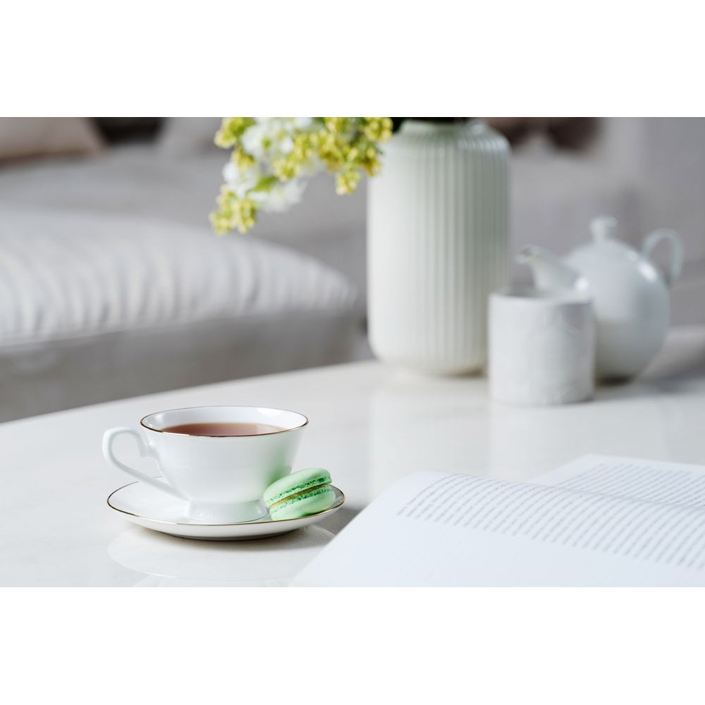 Сложная двусоставная форма, золотая отводка и изящная ручка чашки Mansion Fretwork отправляют нас в эпоху Античности и напоминают о вдохновленных ею творениях мастеров классицизма. Прекрасный способ насладиться любимым напитком и красотой прямо на рабочем месте.