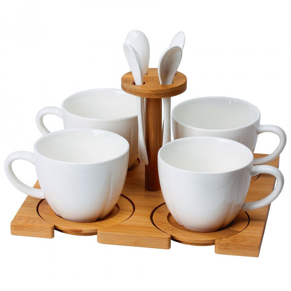 Параметры: Чайная пара с ложкой (4шт) на подставке "Ксю" в упаковке, 200 мл, фарфор
