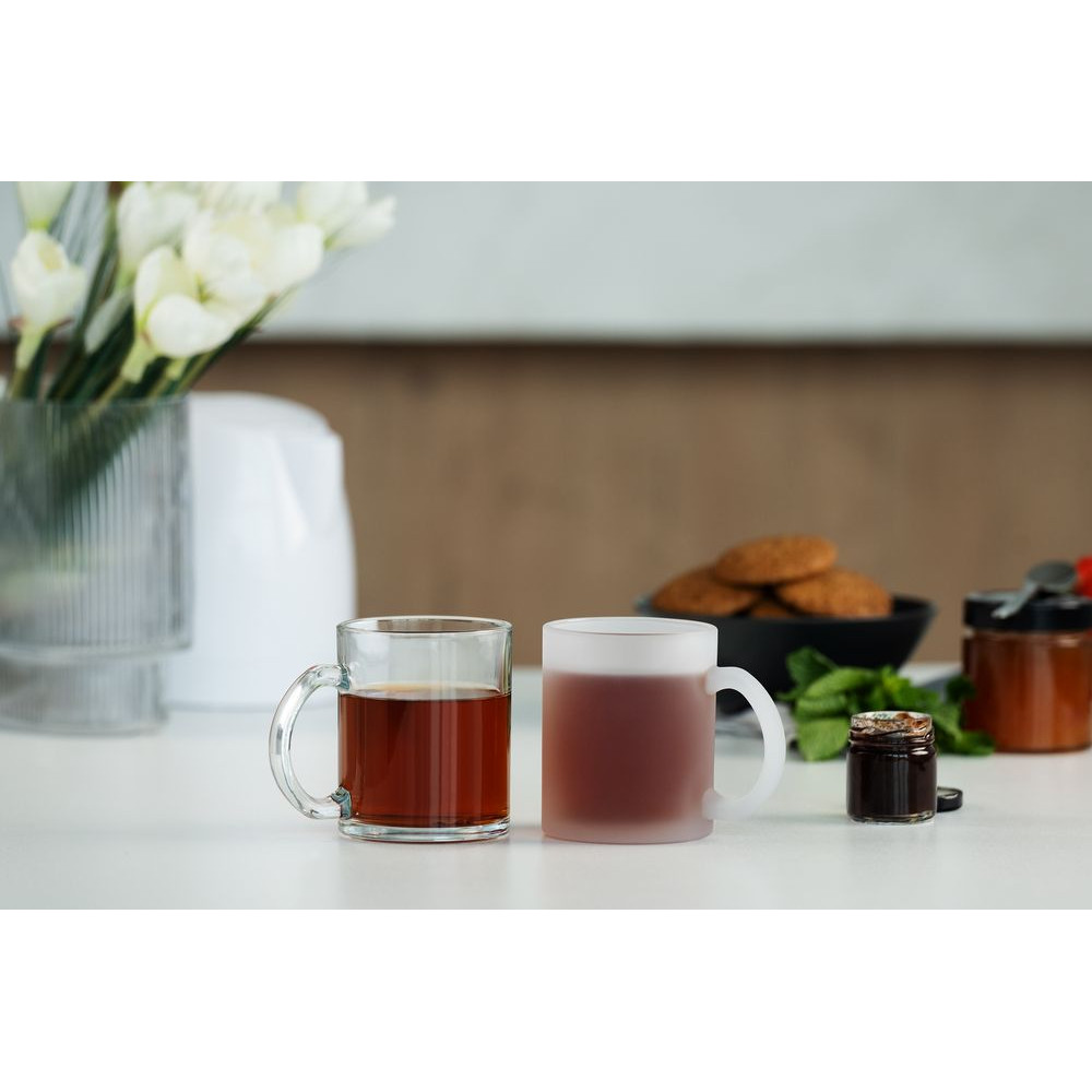 Стеклянная кружка классической формы с удобной ручкой. Подходит для сублимационной печати.