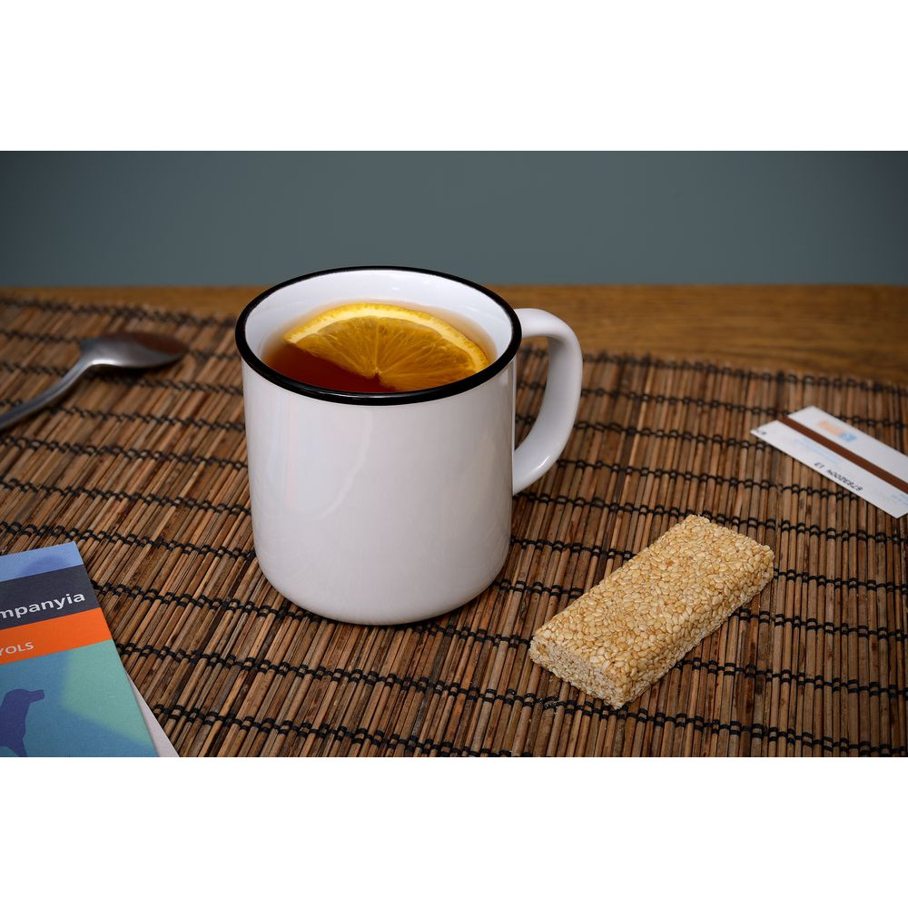 Кружка из фаянса, имитирующая ставшую классикой эмалированную посуду.