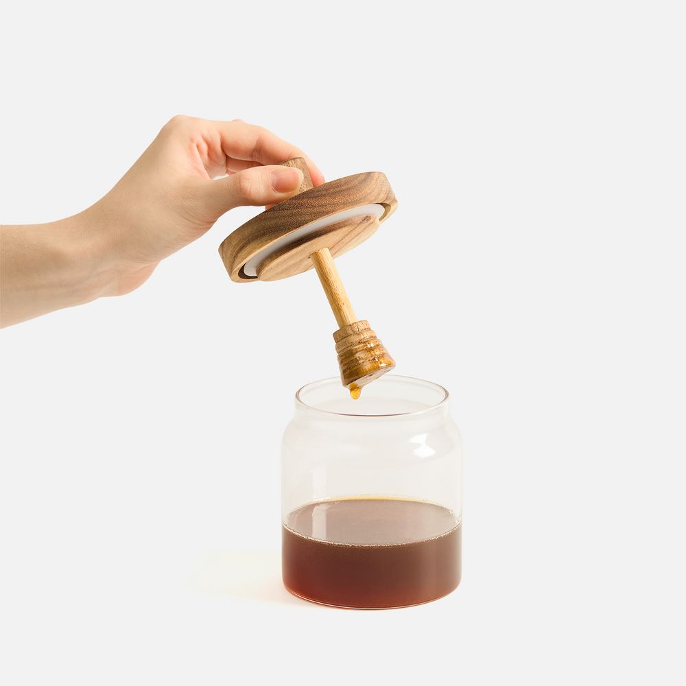 Классическая банка для меда Colmena с ложкой-веретеном станет идеальным подарком для ценителей натуральных продуктов и любителей меда.