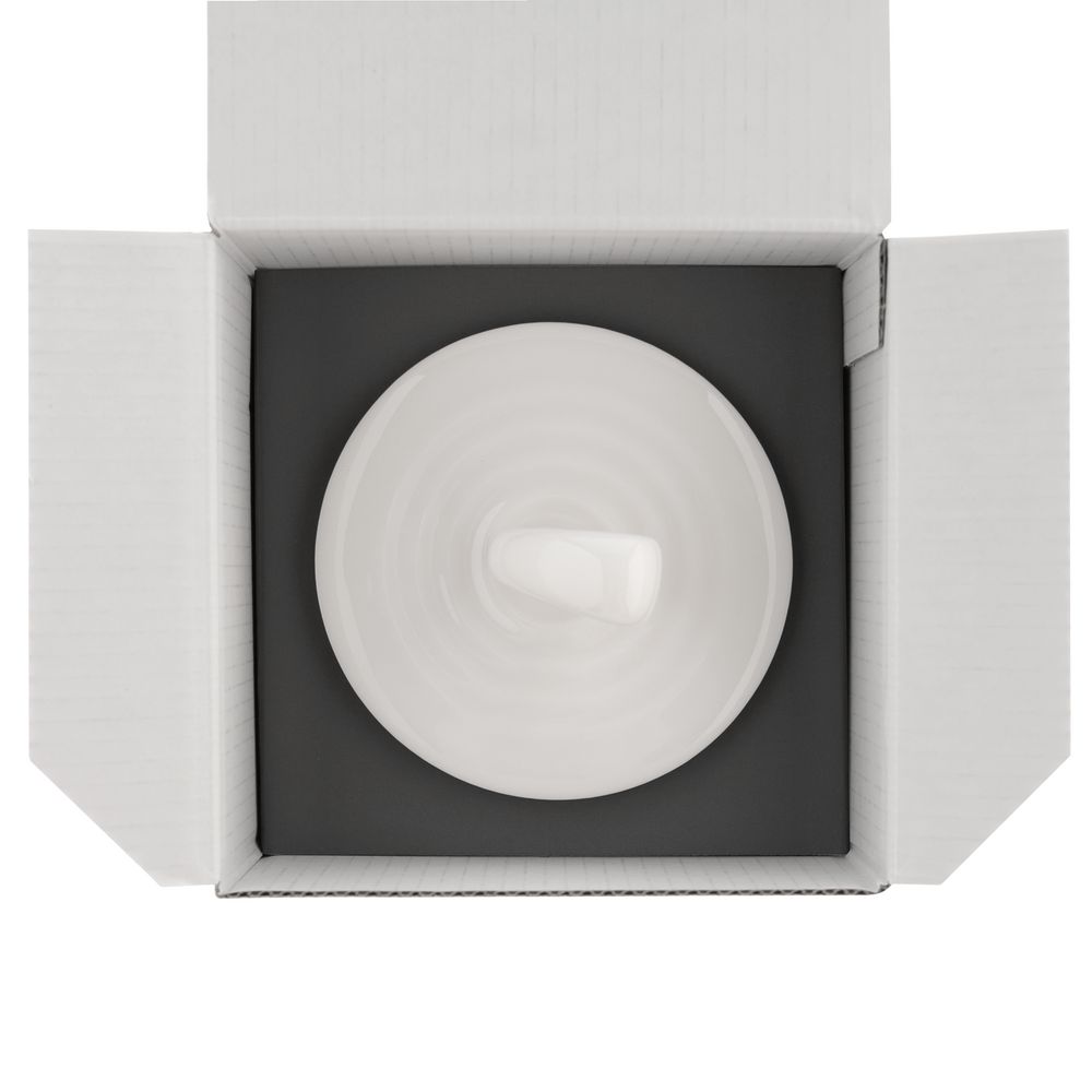 Крышка сахарницы создана в скульптурной технике: фарфор словно запечатлел сам момент движения. Необычная ручка предметов символизирует камень, от которого появляются завораживающие круги на воде.