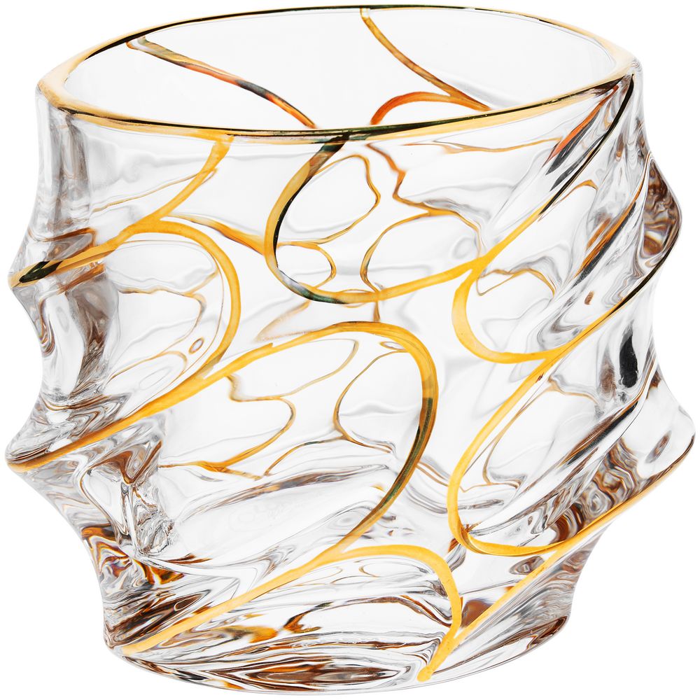 Стакан выполнен из толстого стекла повышенной прозрачности, что позволяет оценить цвет и чистоту крепких алкогольных напитков.Золотистая краска наносится вручную.