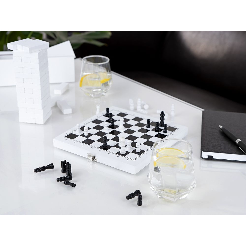 На внутренней стороне доски расположено поле для игры в нарды, на внешней — для шахмат и шашек. Компактная складная доска позволяет хранить все фигуры внутри, что делает данный набор идеальным компаньоном как для домашних вечеров, так и для путешествий.Упаковано в индивидуальную коробку.