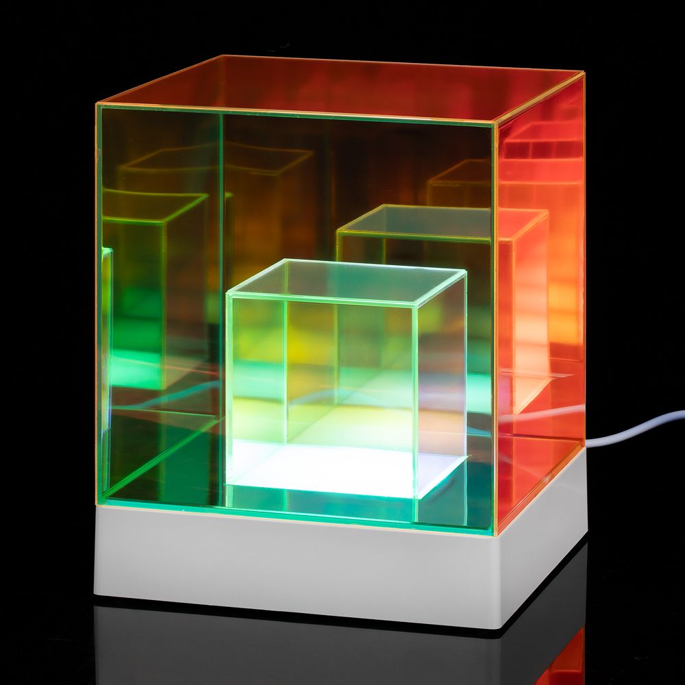 Cubini — интерьерный светильник с разноцветной подсветкой и удивительным оптическим эффектом. Разные оттенки граней и их множественные отражения мгновенно притягивают взгляд, заставляя рассматривать кубик снова и снова.