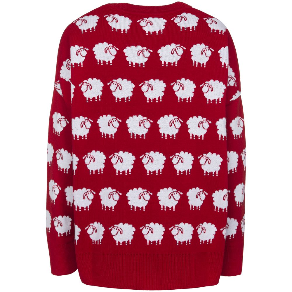 Свитер унисекс с вывязанным логотипом и индивидуальным рисунком в фирменной цветовой гамме.