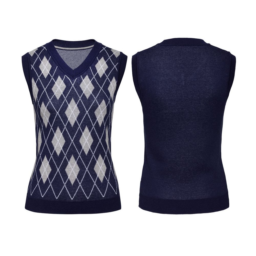 Жилет с вывязанным логотипом и индивидуальным рисунком в фирменной цветовой гамме.