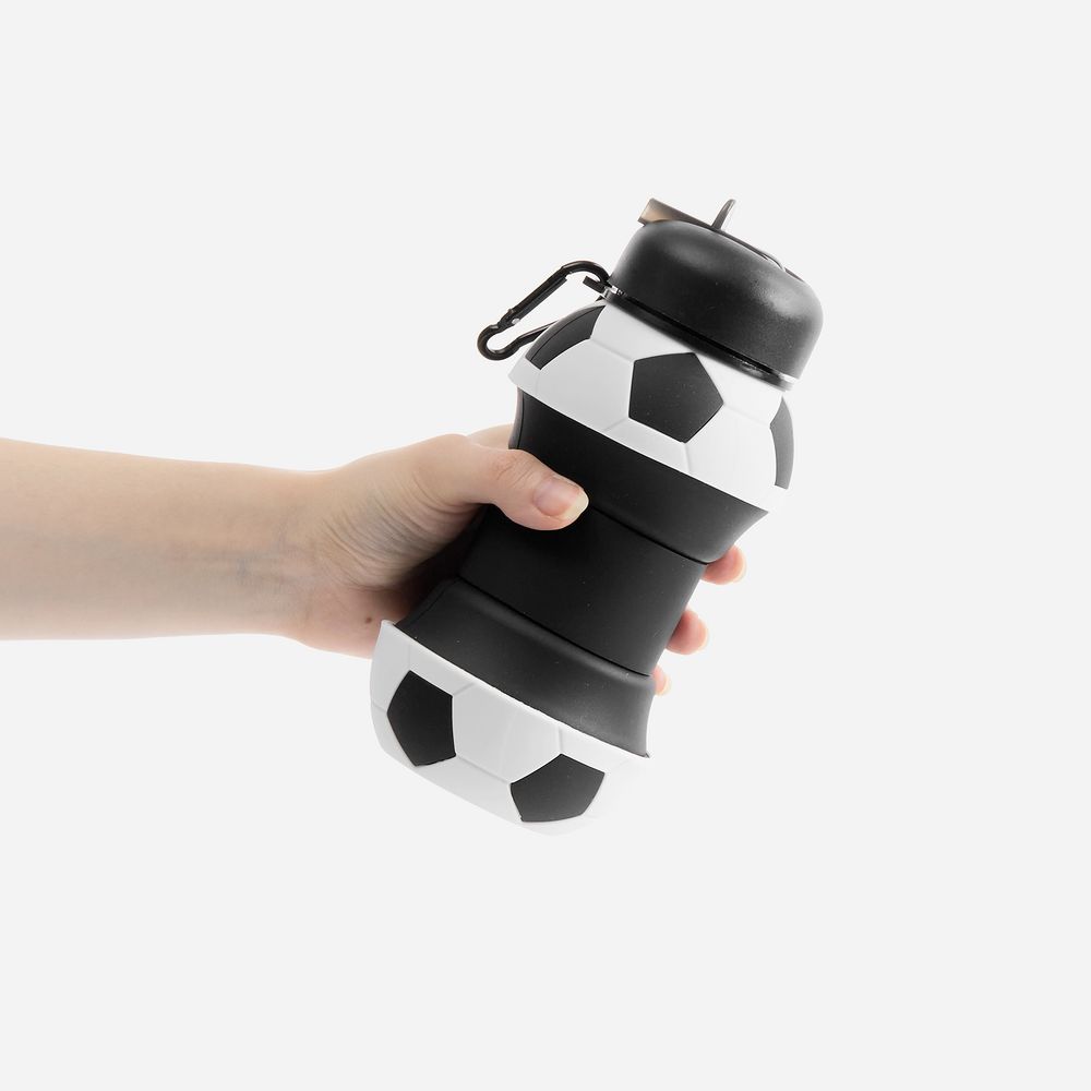 • Складная бутылка для воды Football Flex, белая с черным