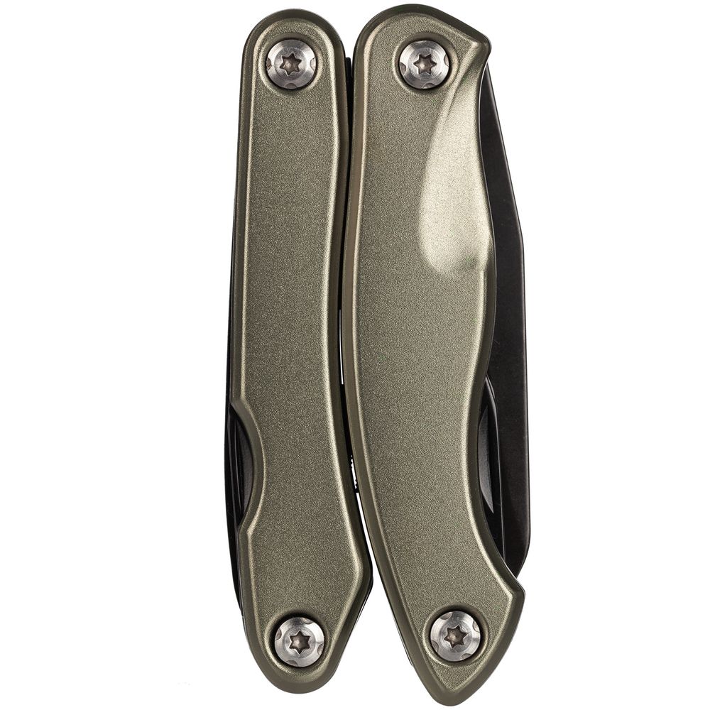 Компактный многофункциональный инструмент изготовлен из высококачественной инструментальной нержавеющей стали.
