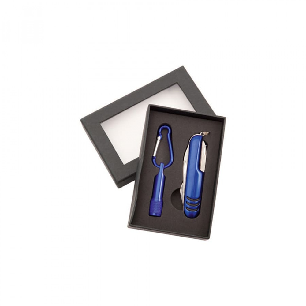 Параметры: Набор Sufli: фонарик с 1 светодиодом, батарейка включена. Нож-мультиинструмент, 7 функций, синий