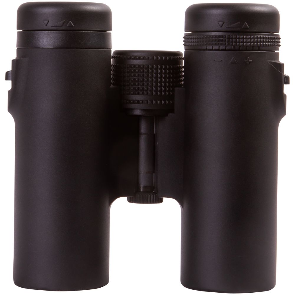 Бинокль создан на базе roof-призм и линз, сделанных из стекла BK-7. На линзы нанесено полное просветляющее покрытие — оно улучшает светопропускание и повышает качество картинки. У правого окуляра есть диоптрийная коррекция — с помощью специального кольца можно отрегулировать резкость в зависимости от особенностей зрения наблюдателя. Для фокусировки используется барабан, расположенный в центре корпуса. У окуляров увеличенный вынос зрачка и удобные поворотно-выдвижные наглазники, положение которых легко регулировать.