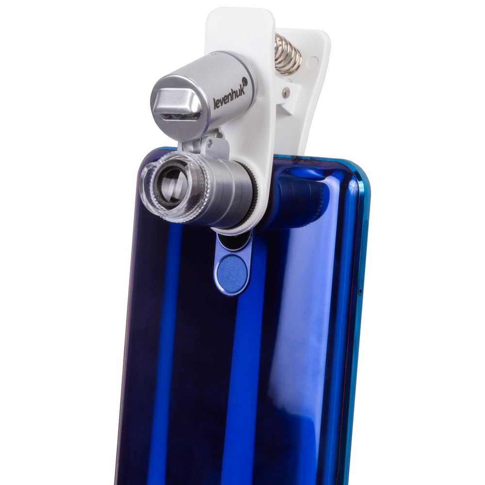 Микроскоп можно закрепить на камере смартфона или планшета и использовать для фото- и видеосъемки увеличенного изображения и таким образом фиксировать результаты наблюдений.В комплект входит чехол из полиэстера.