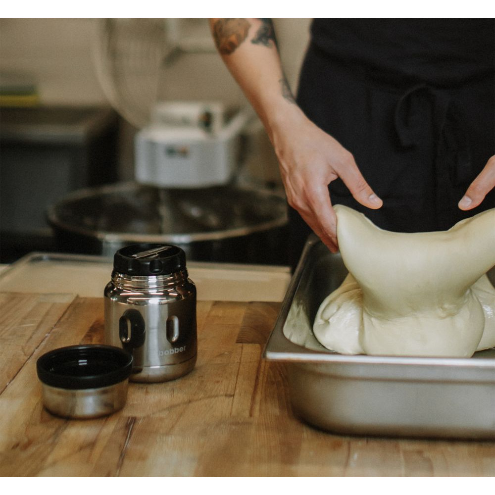 - Благодаря металлической вставке на пробке еда не контактирует с пластиком