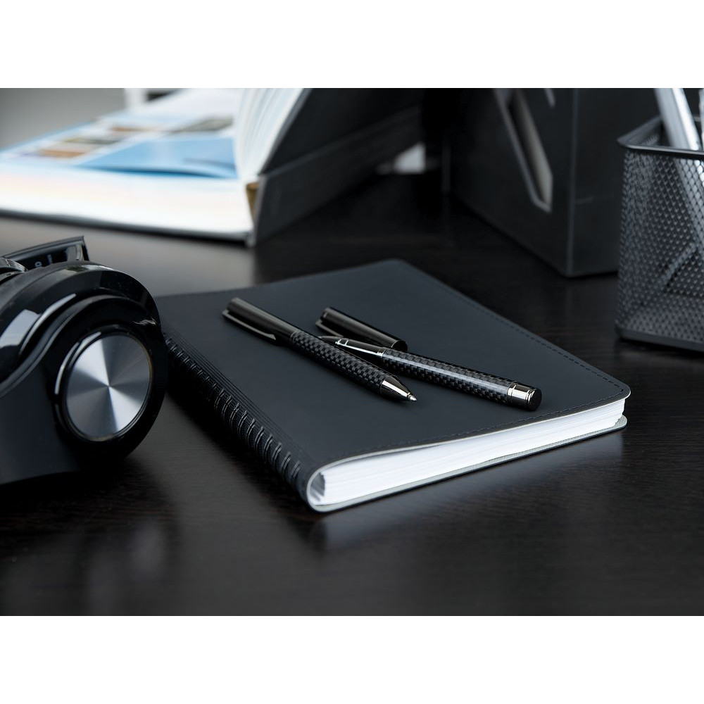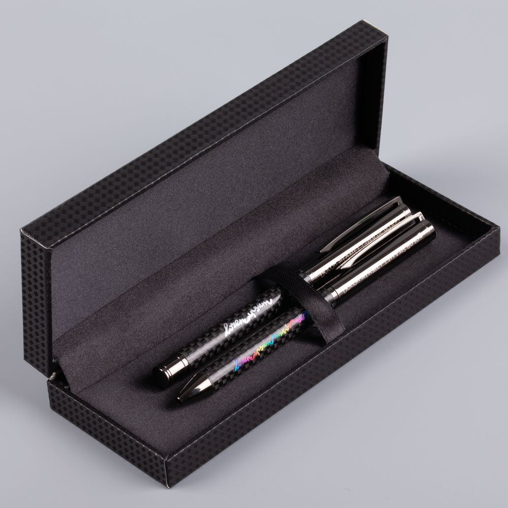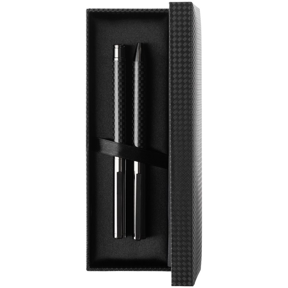 Покрытие корпуса ручки и роллера ассоциируется с современными технологиями, автомобильной и промышленной эстетикой, что добавляет сдержанной элегантности всему набору.