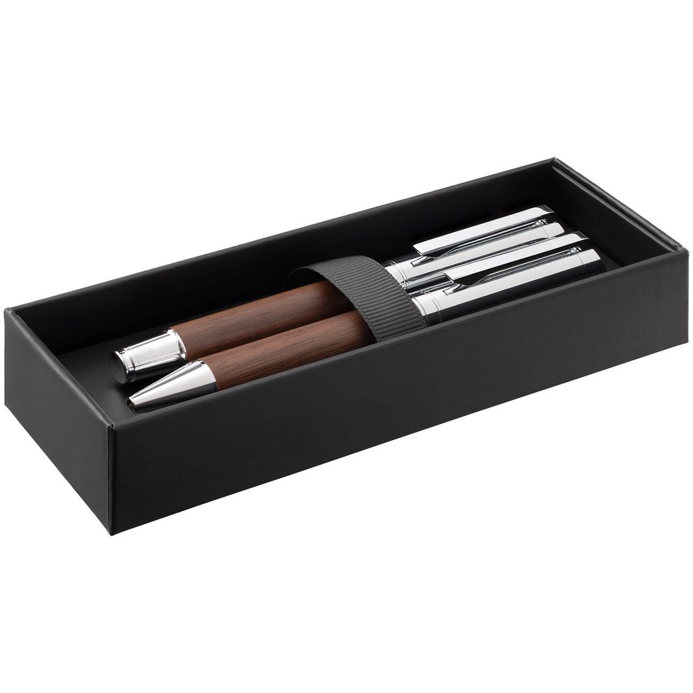 Набор из ручки и роллера Waldo — выбор тех, кто ценит во всем качество и уникальность. Благородный глубокий оттенок древесины ореха, гармоничное сочетание эстетики и функционала делают набор Waldo эффектным деловым подарком.