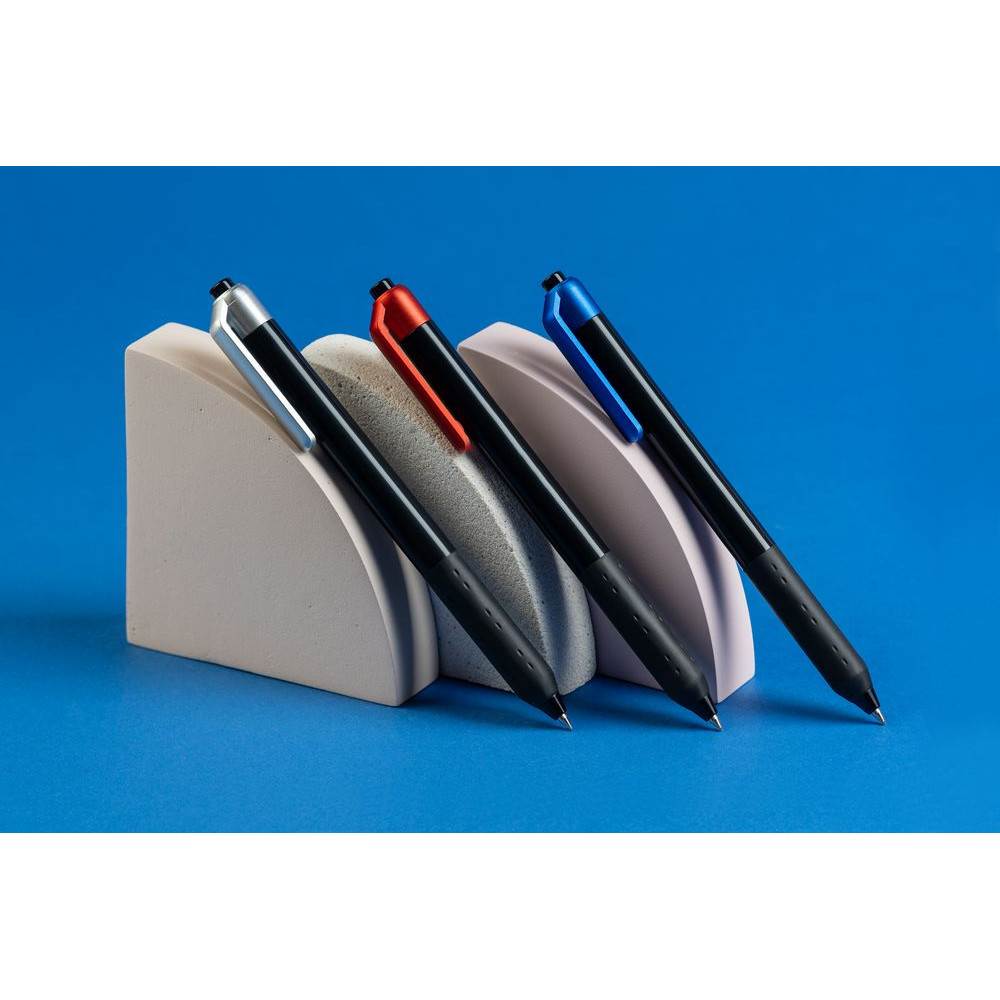 Пластиковая ручка с резиновым упором и контрастными деталями с металлическим отливом. Чернила пониженной вязкости обеспечивают мягкое и плавное письмо.