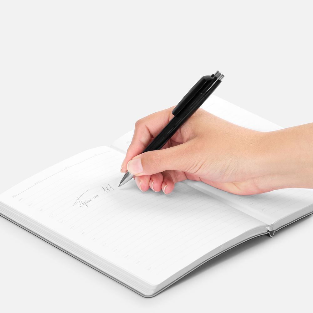 Пластиковая ручка с глянцевым корпусом и хромированными деталями. Большой клип идеален для нанесения логотипа компании.