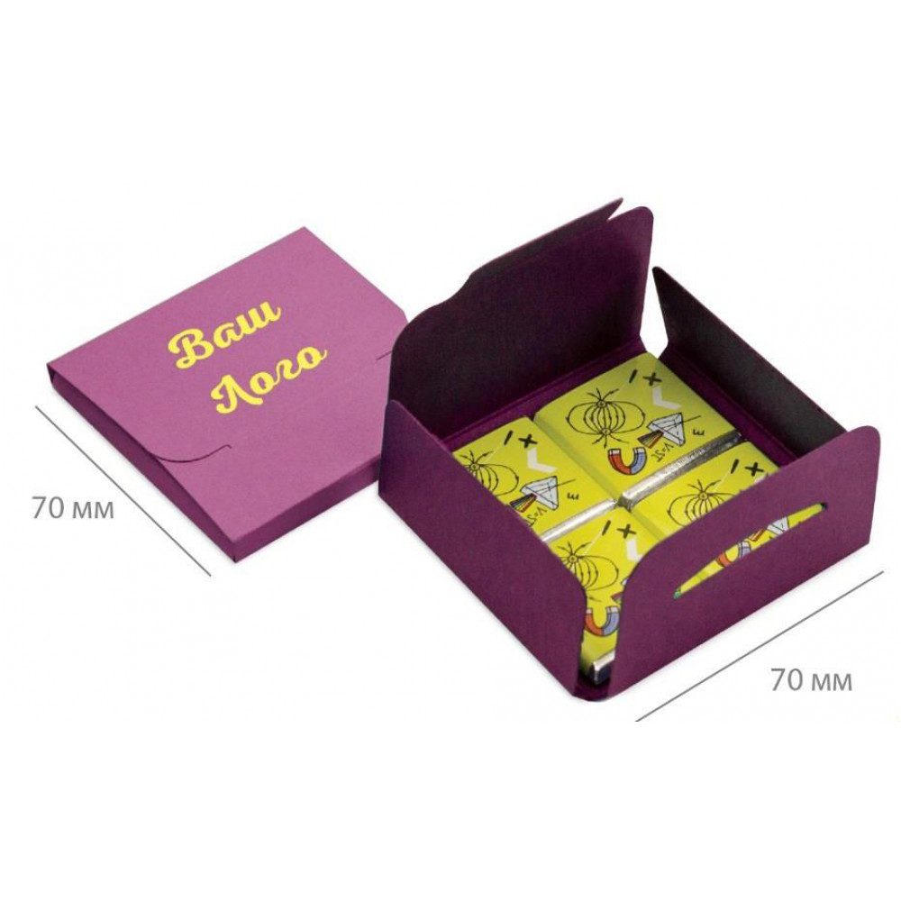 • Обертка с полноцветной печатью на каждой плитке шоколада.