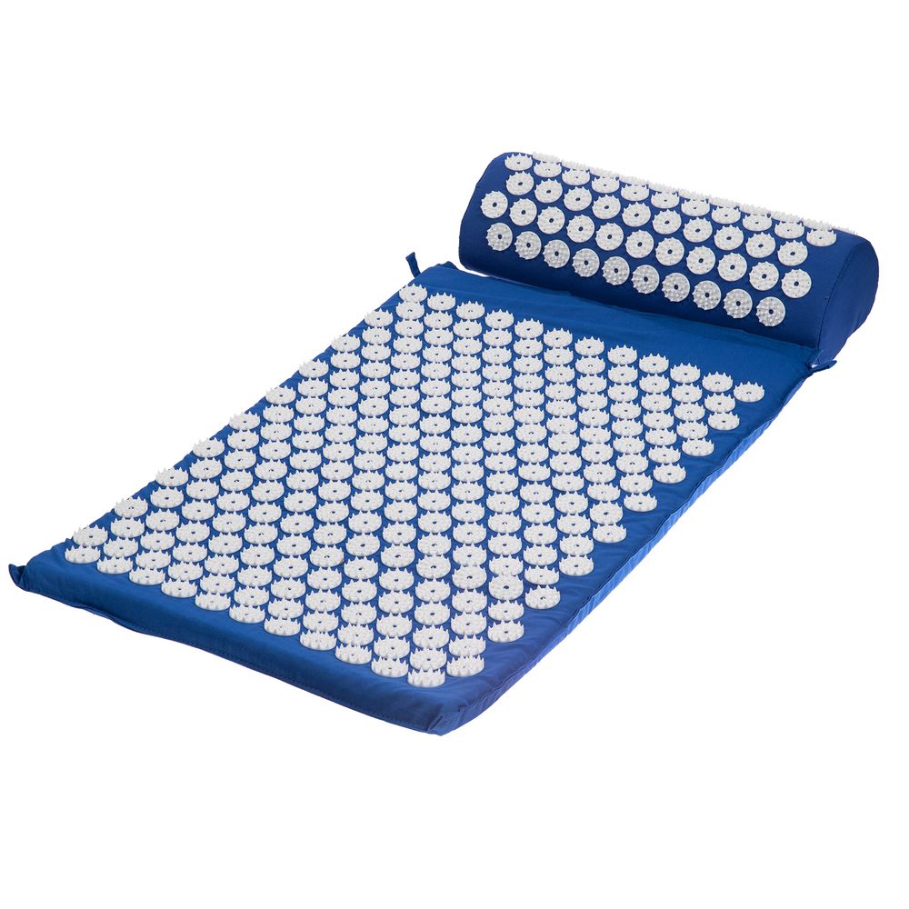 Массажный акупунктурный коврик с валиком Iglu, синий с белым