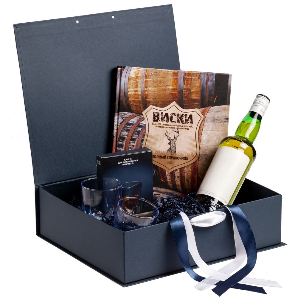 Коробка выполнена из переплетного картона, кашированного дизайнерской бумагой Malmero, с крышкой на лентах.