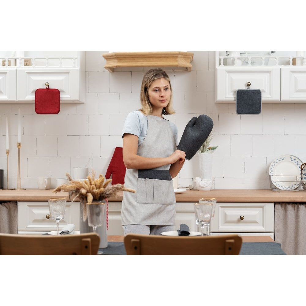 Износостойкая ткань, имитирующая лен, обработана пропиткой от грязи и воды, что делает ее применение для кухни и дома практичным, а уход — легким.