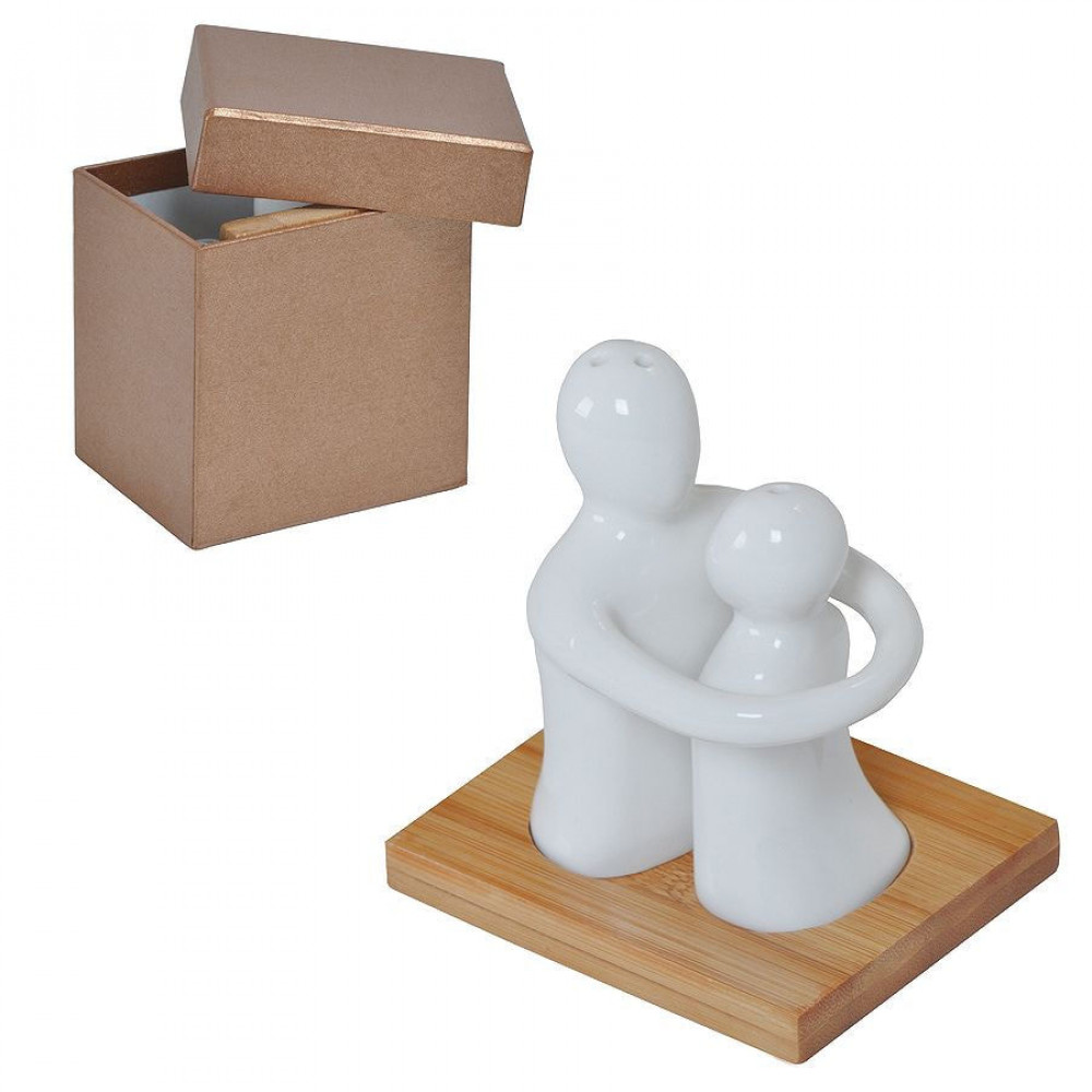 Параметры: Солонка и перечница "Объятия" в упаковке, 9х8х9,5см, фарфор, бамбук