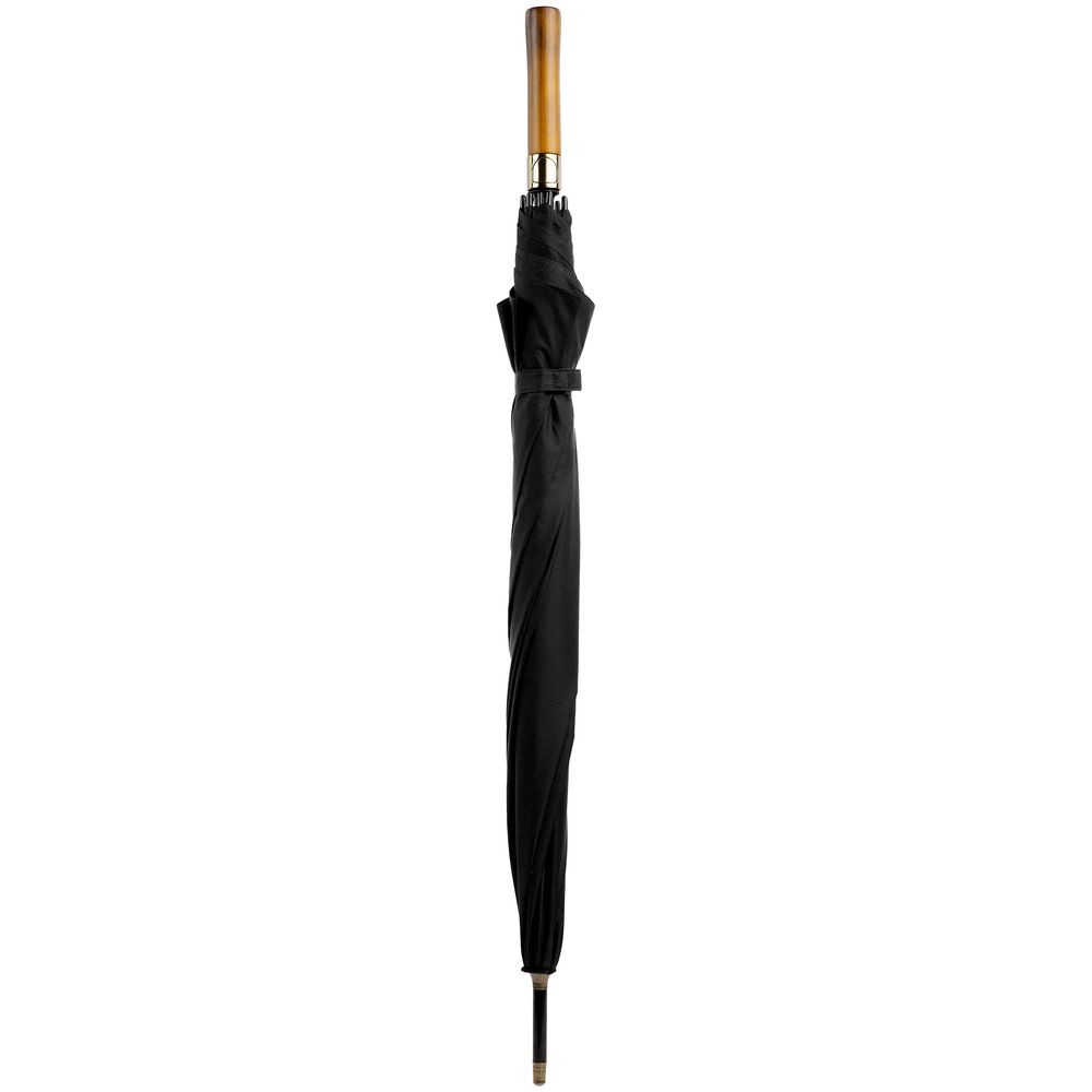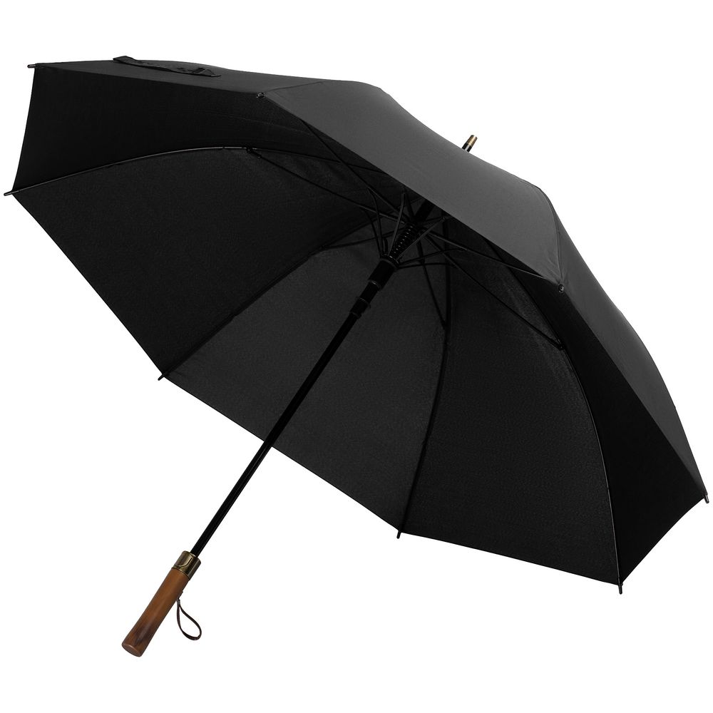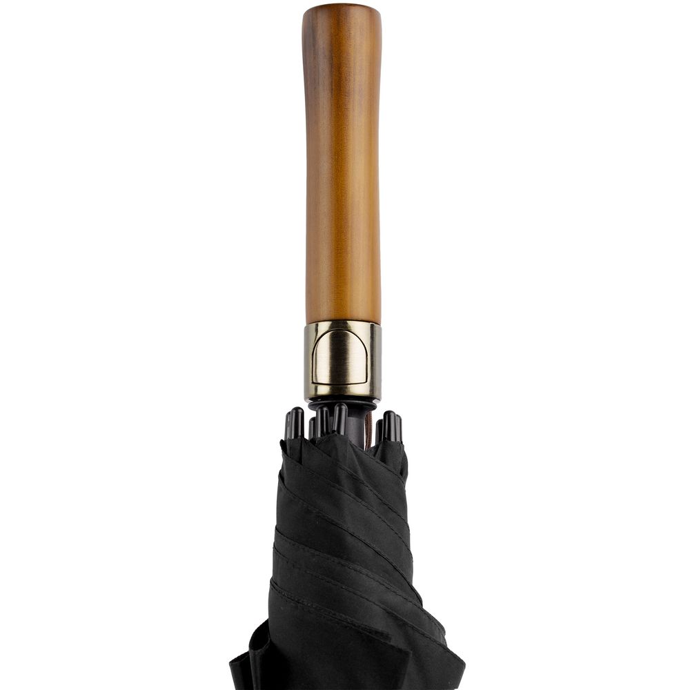 - Прямая деревянная ручка с петлей из натуральной кожи и кнопкой открытия зонта