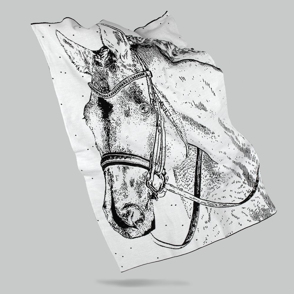 Черно-белое исполнение в узнаваемом стиле старинной гравюры моментально переносит в мир былин и сказаний, напоминая о том, что с давних времен лошадь — верный друг и защитник человека, доблестный и величественный. Конь подобной масти символизирует мудрость и благородство, а также гармоничное сочетание силы и грации.