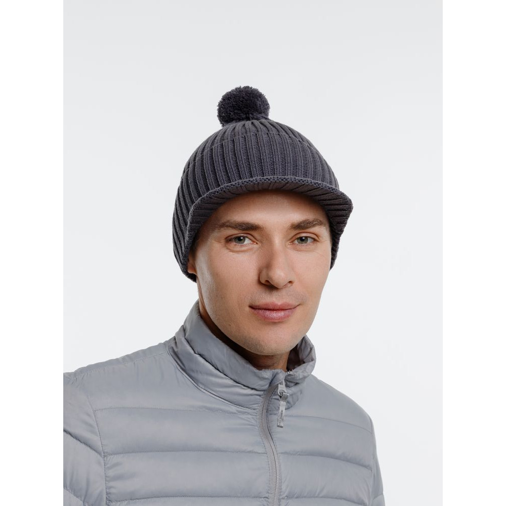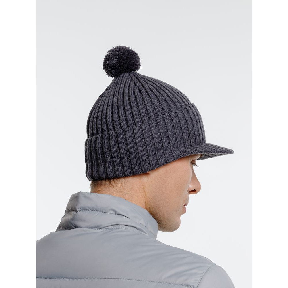 • Вязаная шапка с козырьком Peaky, серая (антрацит)